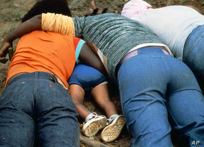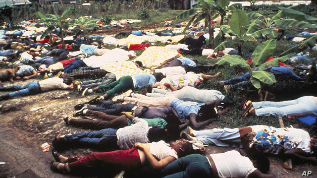 | Corpos dos membros da seita Templo do Povo / Imagem: David Hume Kennerly |