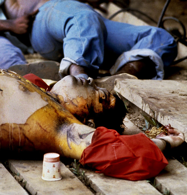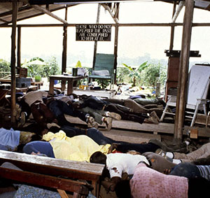 | Corpos ao redor do pavilhão principal de Jonestown / Imagem: David Hume Kennerly |