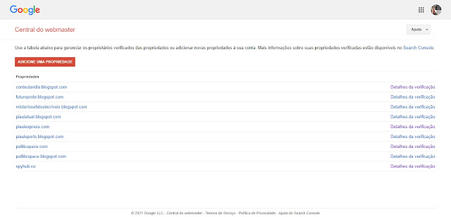 Se você está tendo problemas com os registros CNAME do seu domínio que você comprou e colocou no Blogger e precisa encontrá-los, saiba que é muito simples, basta você acessar a ferramenta para Webmasters do Google, clique aqui. Lá estão os seus sites verificados no Search Console.
