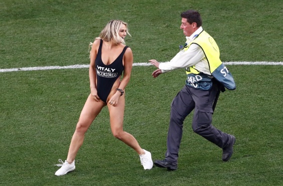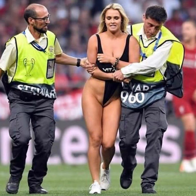 A final da Liga dos Campeões entre Tottenham e Liverpool no Wanda Metropolitano, em Madri, contou com a invasão de uma bela mulher vestindo apenas um maiô. O nome da invasora é Kinsey Wolanski, ela é americana e tem 22 anos, nasceu em 30 de agosto de 1996.