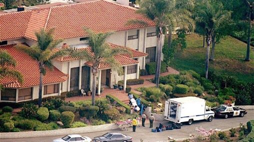 | Policia em frente a mansão onde os membros da Heaven’s Gate se suicidaram em 1997 |