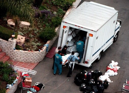 | Policia recolhendo os corpos dos membros da Heaven’s Gate |