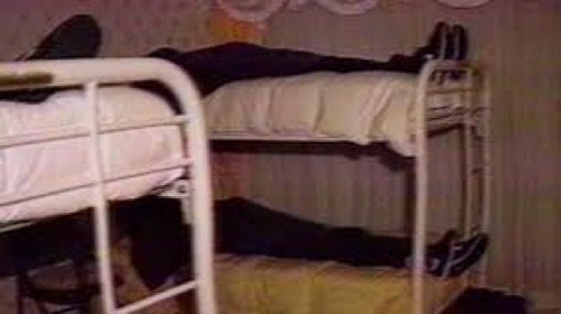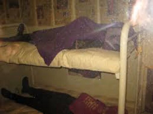 | Eles estavam mortos em seus beliches com pano roxo sobre o rosto |